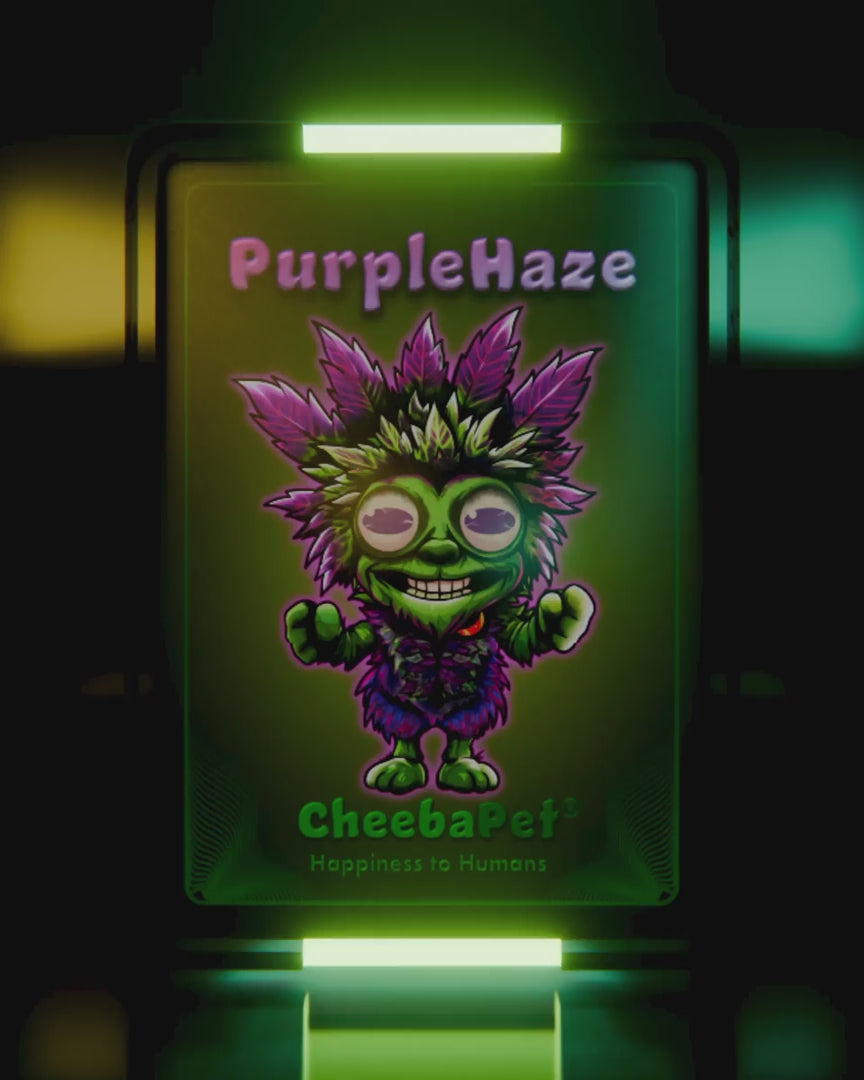 Each OG CheebaPet is forever memorialized in collectible 3D NFT Trading Cards. The CheebaPet Characters are artistically hand-drawn and accompanied by original soundtracks inspired by the profile of each strain.