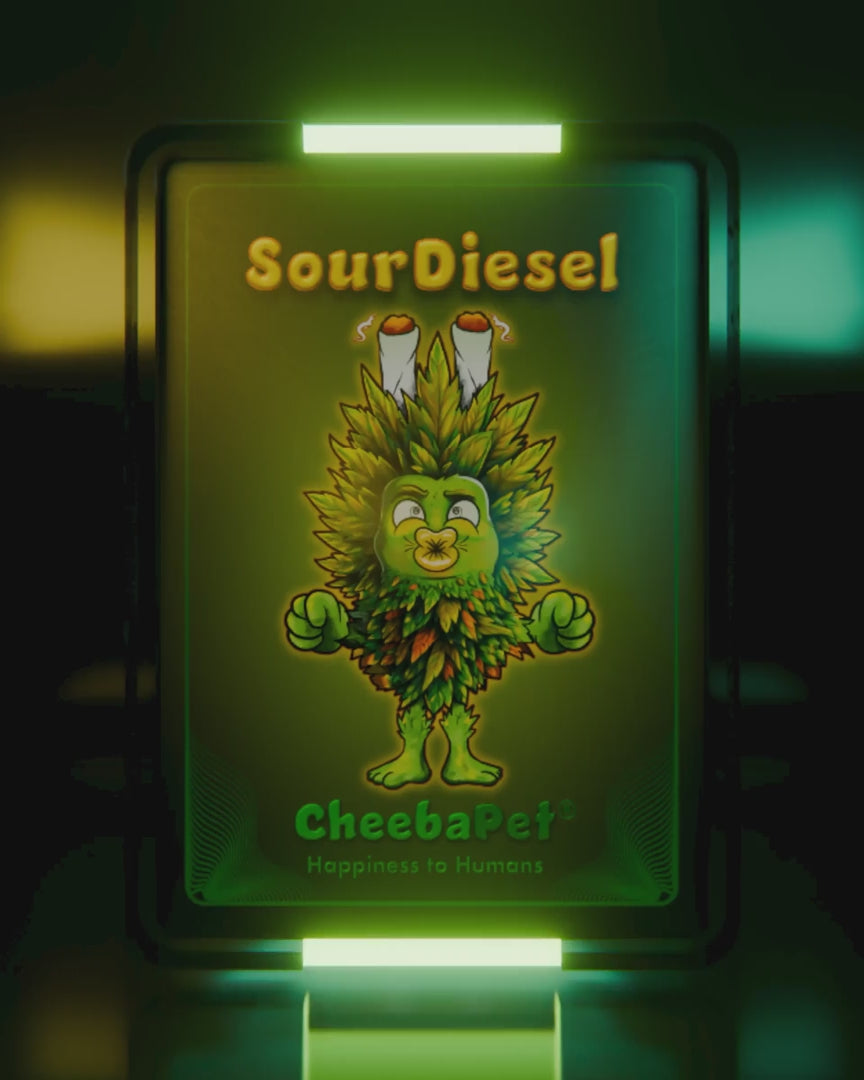 Each OG CheebaPet is forever memorialized in collectible 3D NFT Trading Cards. The CheebaPet Characters are artistically hand-drawn and accompanied by original soundtracks inspired by the profile of each strain.