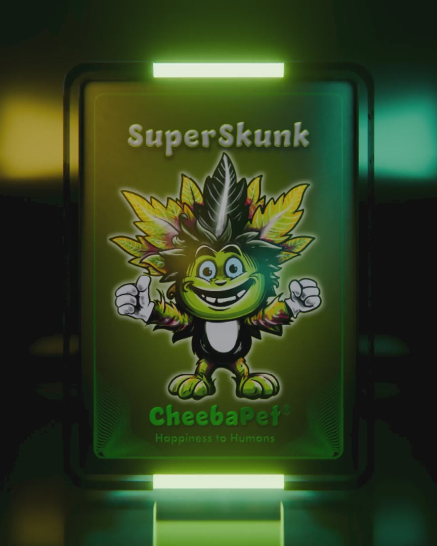 Each OG CheebaPet is forever memorialized in collectible 3D NFT Trading Cards. The CheebaPet Characters are artistically hand-drawn and accompanied by original soundtracks inspired by the profile of each strain.