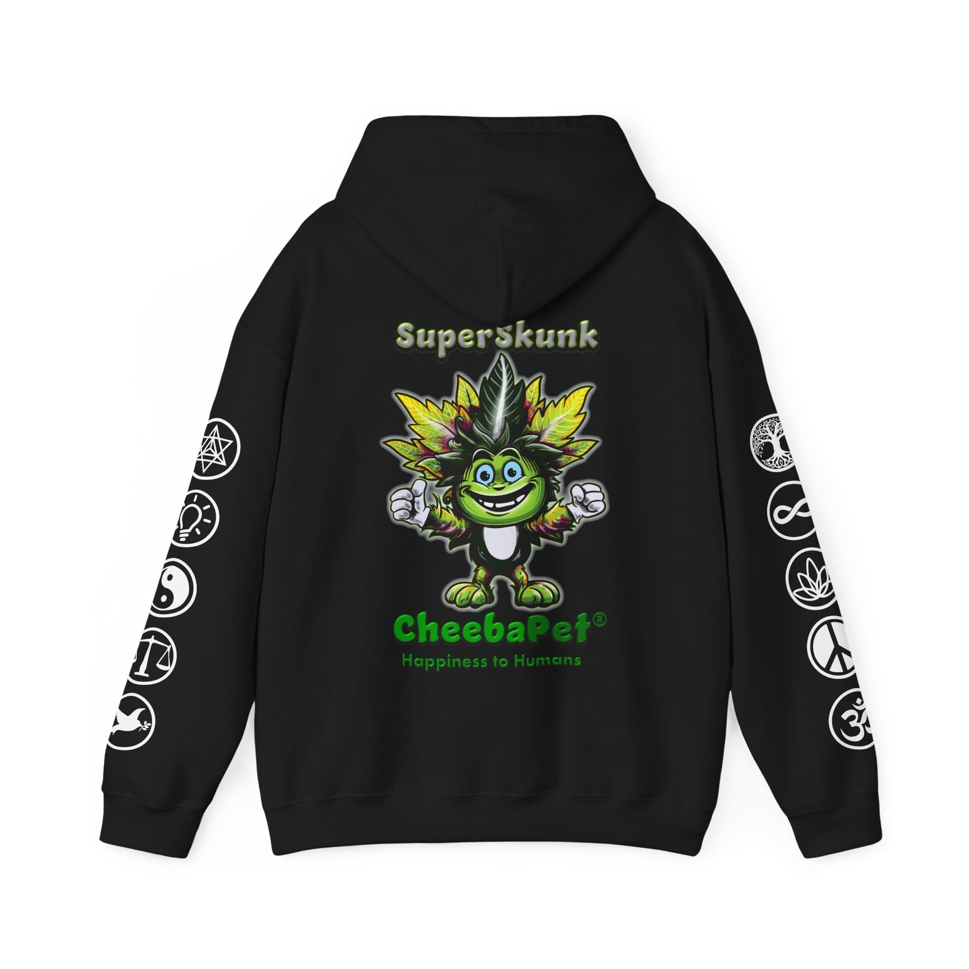 This Unisex CheebaPet Hoodie with Harmony Sleeve Symbols is relaxation itself in style. Made with a thick blend of cotton and polyester, it feels plush, soft and warm, a perfect choice for any cold day.